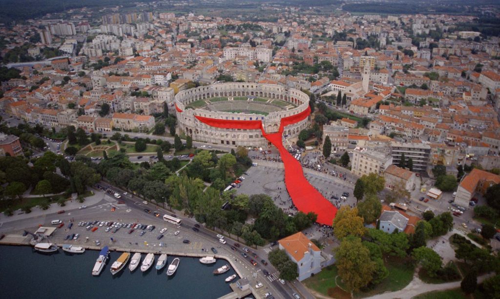 In 2003, a monumental cravat was placed around the Pula Arena. The installation was realised by Academia Cravatica as part of its long-term cultural and research programme dedicated to the history and symbolism of the cravat and its modern descendant, the necktie.